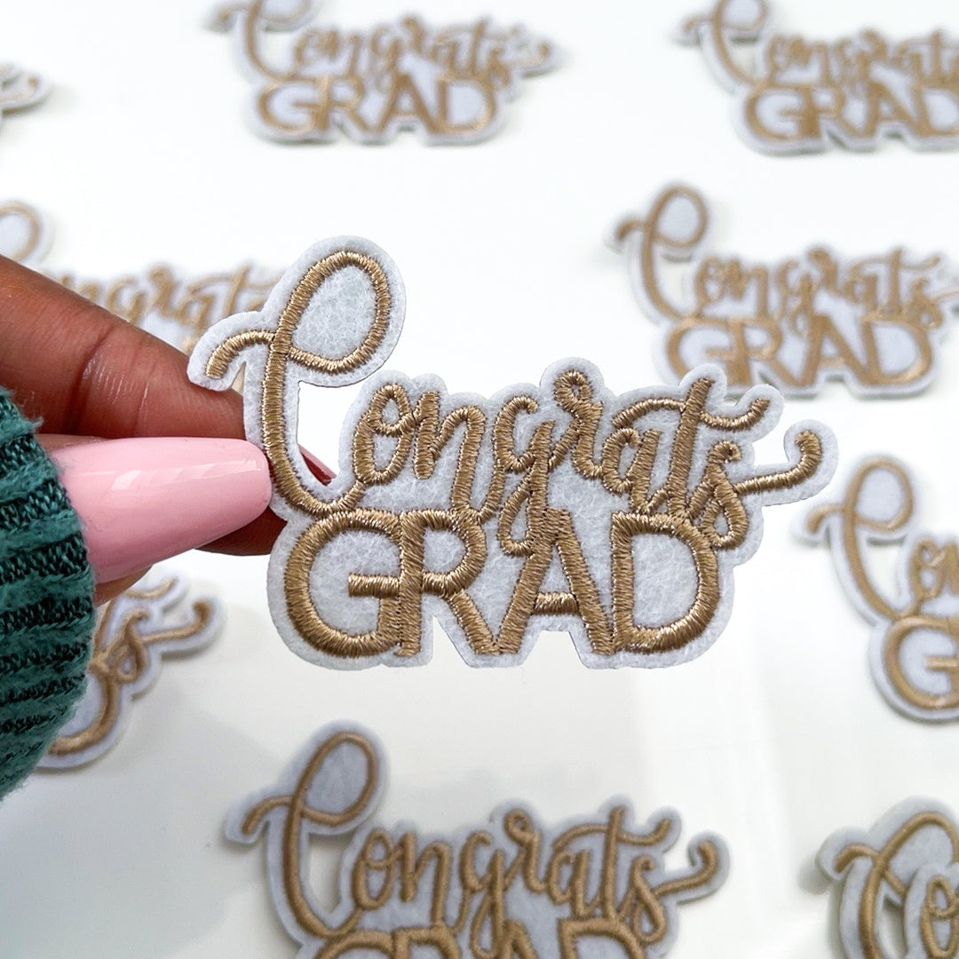 Celebrate the academic milestone with our Congrats Grad Patch! Whether it's for a hat, jacket, or bag, this iron-on or sew-on patch is the perfect way to commemorate the achievement. Made with high-quality materials, it's durable and long-lasting. This patch adds a personalized touch to any outfit or accessory. Give the gift of recognition and encouragement with this unique and thoughtful customizable graduation patch!