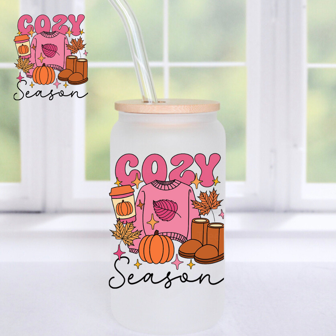 Get ready to snuggle up and enjoy the season with our Cozy Season UV DTF Decal. Order yours today and add a touch of warmth to your life!
