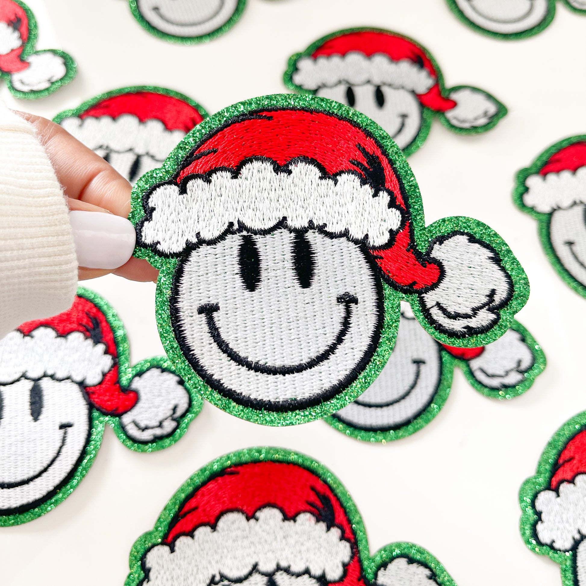 Get into the holiday spirit with this adorable smiley face patch wearing a festive Santa hat! Made from soft chenille material, this patch is perfect for adding a cheerful touch to your jackets, bags, hats, and more. With its vibrant colors and soft texture, it’s a fun and easy way to spread holiday joy wherever you go. The iron-on backing makes application quick and hassle-free, perfect for customizing your favorite winter accessories.