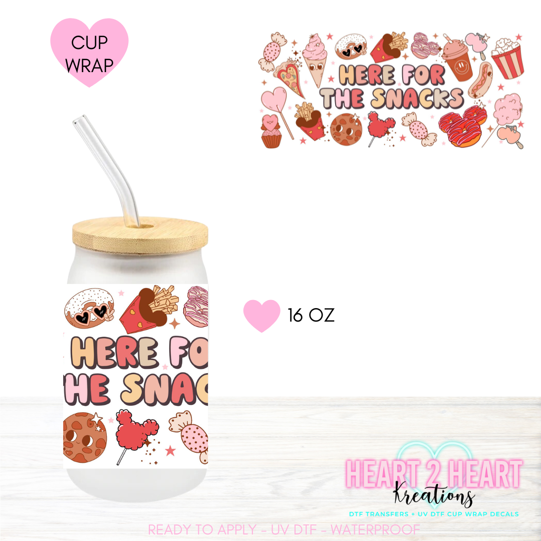 HERE FOR THE SNACKS 16 OZ UV DTF CUP WRAP
