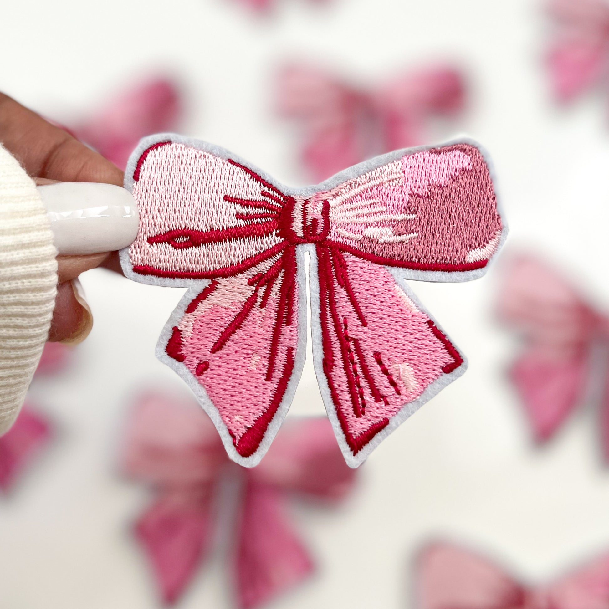Pink Bow Embroidered Patch