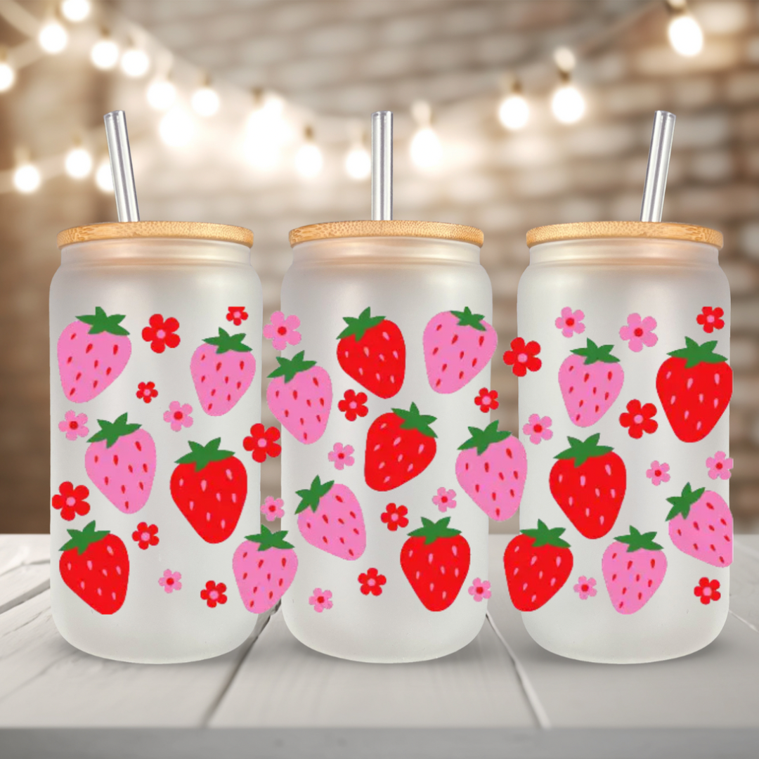 Add a touch of elegance and charm to your drinkware with our Pink and Red Strawberries UV DTF Glass Cup Wrap! This adorable wrap features a design, perfect for those who love strawberries. Crafted using high-quality UV DTF printing, this cup decal sticker is both durable and easy to apply, making it an ideal choice for decorating your favorite glass cans. Whether you're hosting a tea party, enjoying a cozy drink, or searching for a unique gift, this pink and red strawberry wrap will make any beverage feel special. Elevate your drinkware collection with this stylish and feminine accessory!