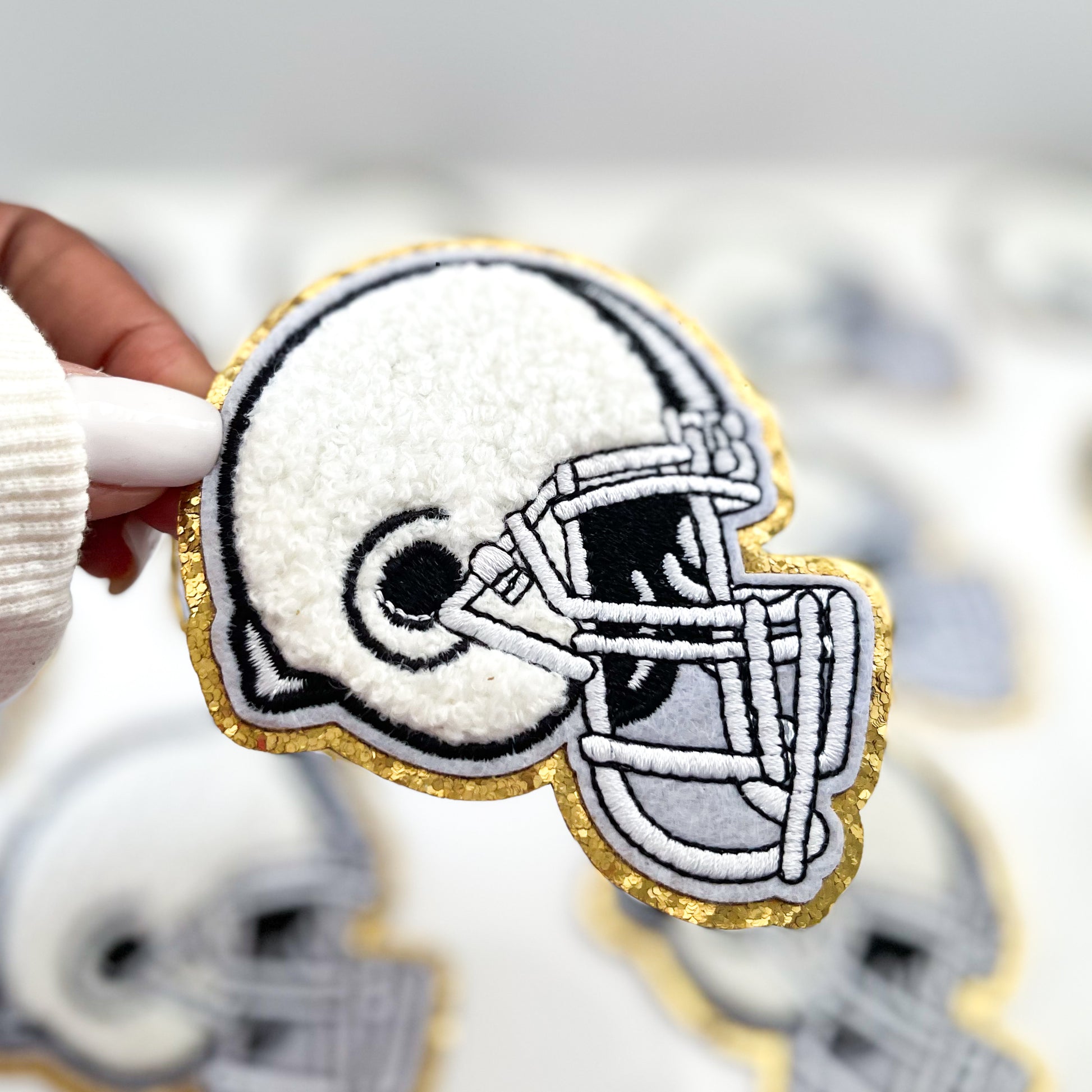 White Chenille Football Helmet Patch
